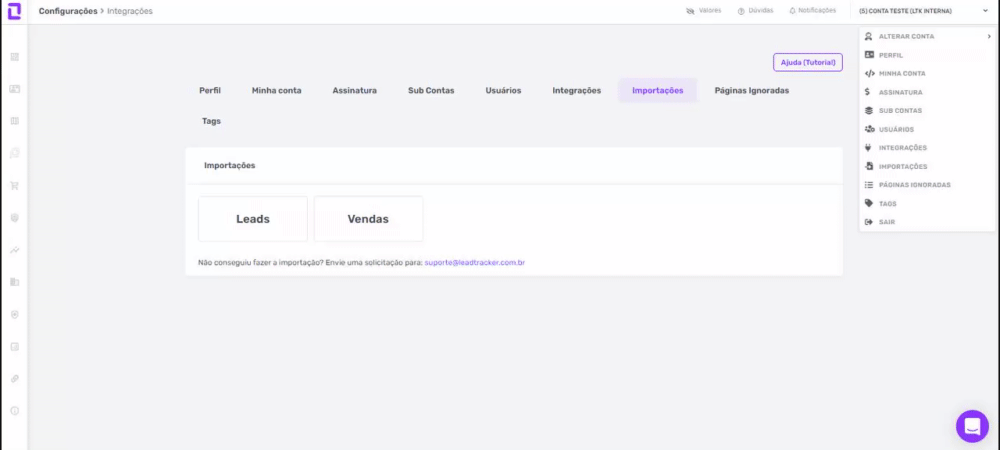 Objetivo da importação: inserir no painel da Lead Tracker toda a base de leads que você já possuía no momento que adquiriu a plataforma.
