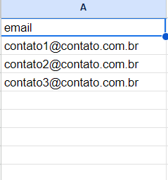 Nessa coluna você irá inserir todos os emails de leads que deseja importar para o painel Lead tracker