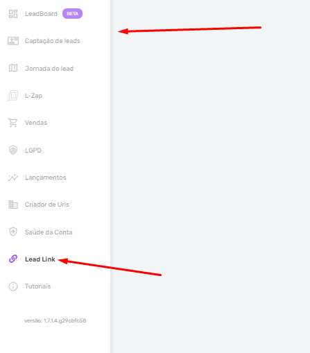 2º Passo: Dentro do painel, localize o menu “Lead Link” na barra lateral esquerda e clique nele;